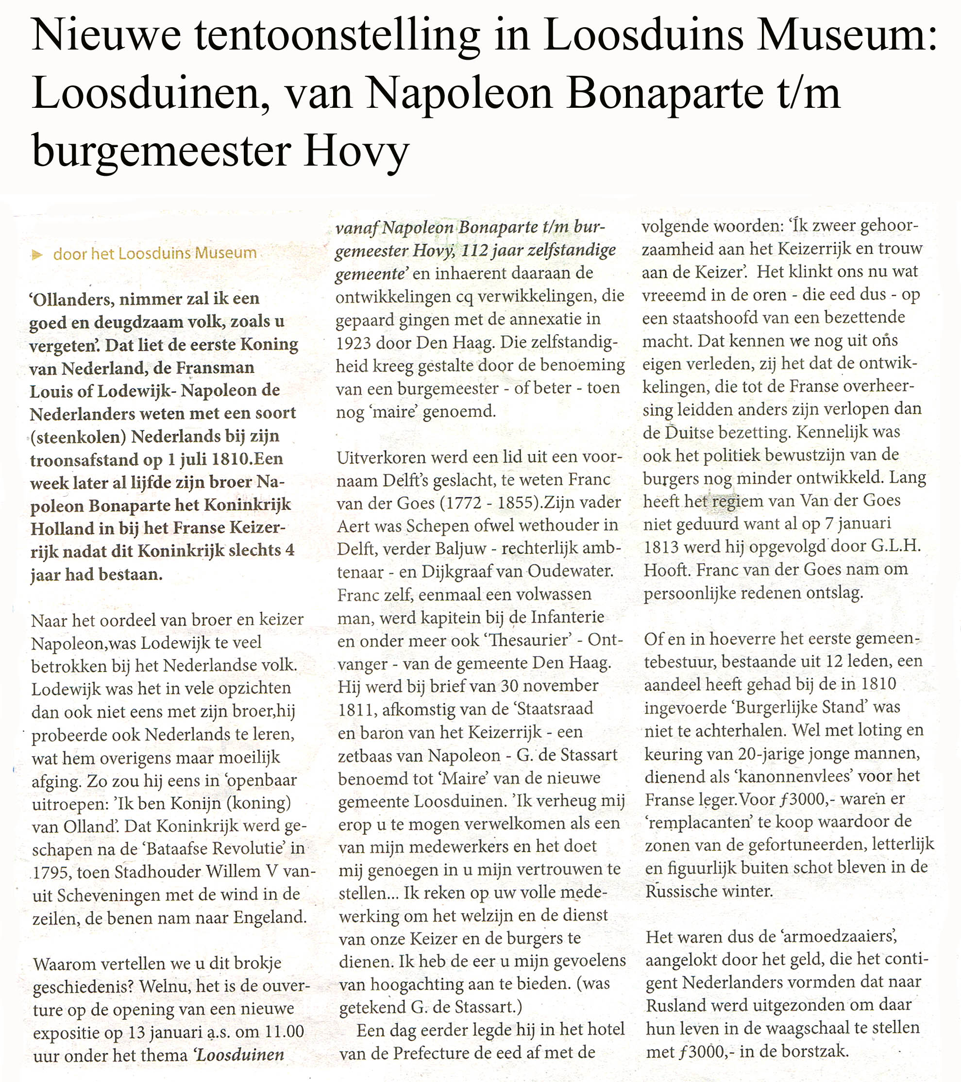 De historici van het Loosduins Museum leveren tweewekelijks een interessante column aan de Posthoorn.